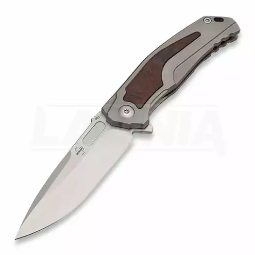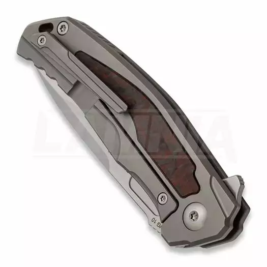 The modern Boker Plus Aphex Mini is the significantly scaled-down version of the Boker Plus Collection 2020 designed by Lucas Burnley. The intricately ground blade is made of VG-10 and is supplied with an impressive hairline finish and a decorative ricasso. Thanks to the ball bearing and flipper, the knife is particularly easy to open. The ergonomically shaped handle is milled three-dimensionally from titanium and is adorned with a modern inlay of wild carbon fibre with red inclusions. Jimpings around the thumb rest and the generously dimensioned spacer increase safety at work. Supplied with a lanyard hole, removable titanium clip (tip-up/r) and a high-quality nylon case for storage.