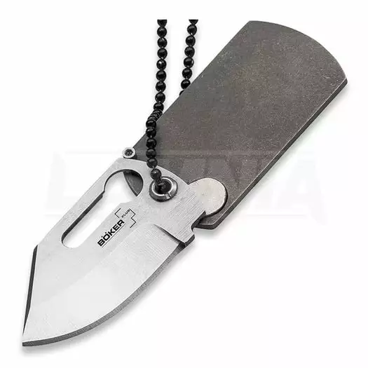 John Kubasek is already known to many as the designer of the successful Credit Card Knife. John Kubasek has now taken the “Backup Knife” topic one step further and presents the 24 gram light-weight Dog Tag Knife. Like its namesake, it is carried around the neck on a ball chain and boasts a thickness of less than 4 mm when retracted (measured without blade pivot point). The chisel grind (single-sided blade grind) provides maximum carrying and operating safety by contacting the titanium liner as closely as possible with the flat backside of the edge. A clever magnetic mechanism also secures the blade in the retracted and deployed state; in each case, the action is strictly accomplished with magnetic force, but with a true locking mechanism instead. As a result, accidental deployment is eliminated even when engaged in active/dynamic activities. The back side of the titanium liner is ideally suited for laser engraving of the name, nickname, medical data, etc. Shipped with ball chain and carabiner.