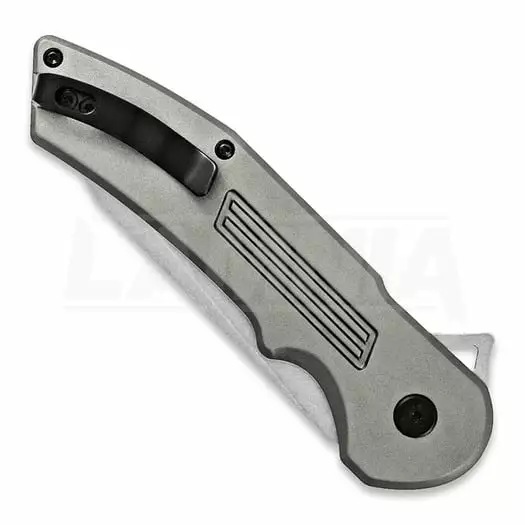 Assisted opening. 5.13″ (13.03cm) closed. 3.25″ (8.26cm) stonewash finish 7Cr17MoV stainless blade. Gray anodized aluminum handle. Extended tang. Pocket clip.