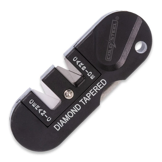 3.25″ overall. Lanyard hole. Coarse carbide and ceramic slots. Tapered diamond coated rod.