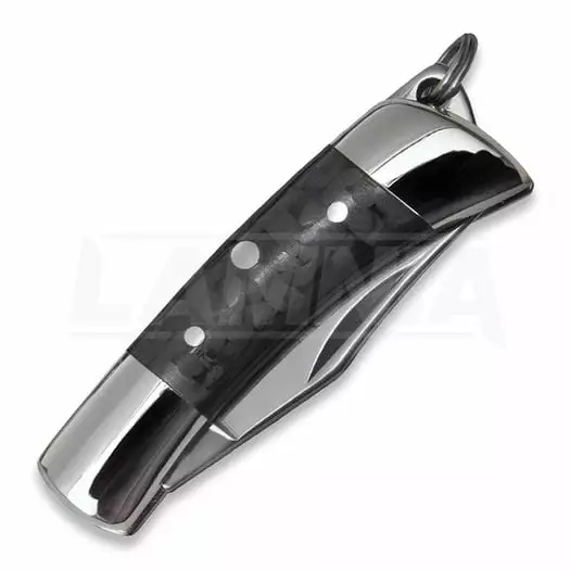 The Charm features a hand-honed and hair-shaving sharp CPM-S35VN clip point blade, and a beautiful black micarta handle with nickel silver bolsters and furniture. It’s an ideal choice for a pocket watch chain, necklace, key chain or lanyard. Whether carried in the coin pocket of your blue jeans, tucked into the pocket of your vest or “waistcoat” or worn around your neck on a necklace, the Charm is a handy sharp little tool that is always there when you need it.