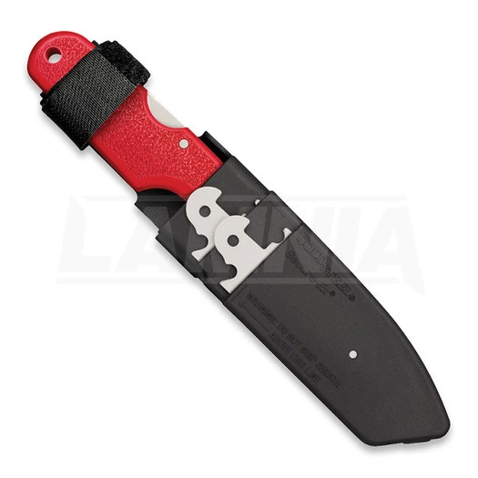 2.5″ (6.35cm) satin finish 420J2 stainless blade. Red ABS handle. Blade etching. Lanyard hole. Comes with bowie, guthook, and serrated utility blades. Slock Master version. Black ABS belt sheath.