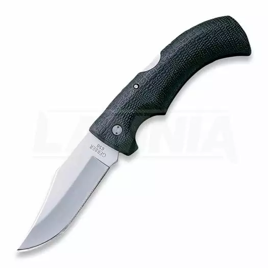 5″ closed lockback. 420HC stainless clip point blade. Alligator hide textured black Kraton handles. Black cordura belt sheath.