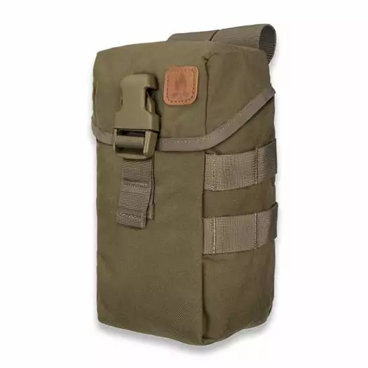 The Water Canteen Pouch is used to conveniently carry a water bottle and cup on the belt. It accommodates a TRITANâ„¢ BOTTLE WIDE MOUTH (1 LITER) with a cup or similar bottles and canteens. The partially reinforced construction makes it easier to take out and insert the bottle, and MOLLE straps on the sides of the pouch allow you to attach additional elements to it. The pouch can be lowered for convenient carrying with a backpack and can be used to carry a knife, folding saw, or ax, similarly to the E&E Pouch.