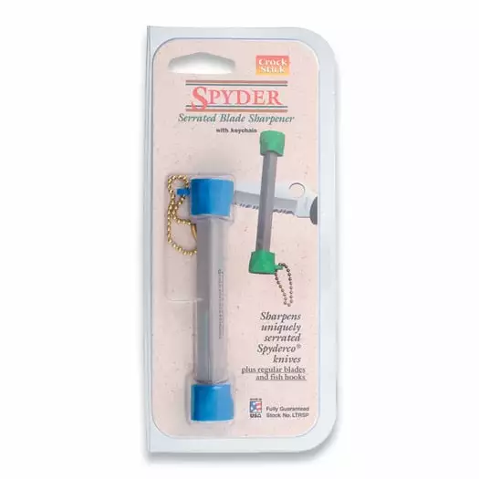 76 mm triangular ceramic sharpener is specially designed to match the unique blade serration patterns found on the Spyderco brand knives. Will also sharpen standard edge knives, fish hooks and broadhead blades. Keychain. Hang packaged. Cap colors may vary.