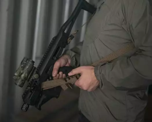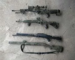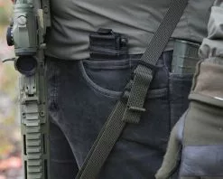 The LW (lightweight) Griffin Sling is simple and low profile as heck, made from 25 mm / 1 ” webbing without any padding, for submachine guns and light and light rifles. Check out the MW if you want a little bit of width and padding, or the HW if you need proper thick padding.