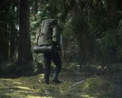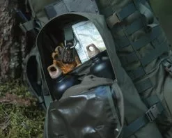 Extra large twelve litre backpack side pouch with rudimentary internal organization and external compression strap loops.