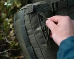 Small four litre backpack side pouch with rudimentary internal organization and external compression strap loops.