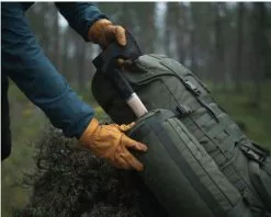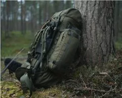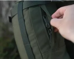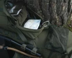 Large eight litre backpack side pouch with rudimentary internal organization and external compression strap loops.
