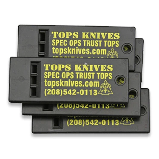 70 mm x 25 mm. Hardened, heavy-duty black plastic construction. Produces a loud blast. Package of five.